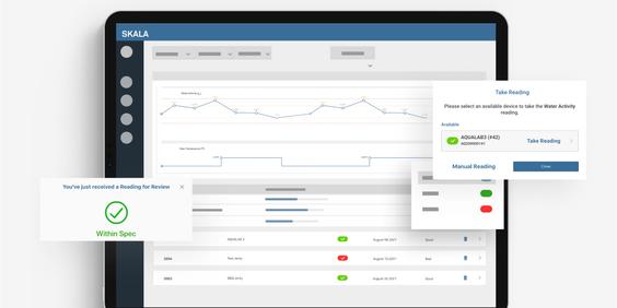 From then on, every time you take a process measurement like temperature, relative humidity, water activity, moisture content, or anything else, it's written permanently to the batch record. The clear, easy-to-read, real-time graphs and results are accessible from any authorized smart device.