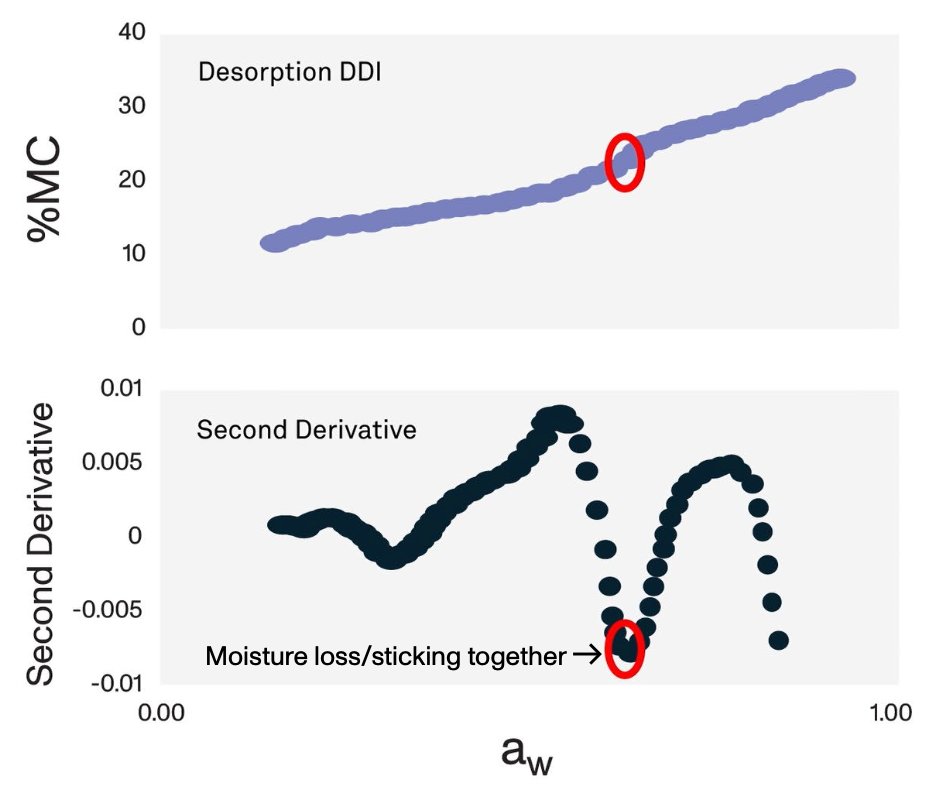 - In R&D, build moisture sorption isotherms for each formula to set water activity specs to maintain desired texture without syneresis occurring while also guiding packaging optimization and shelf life predictions.