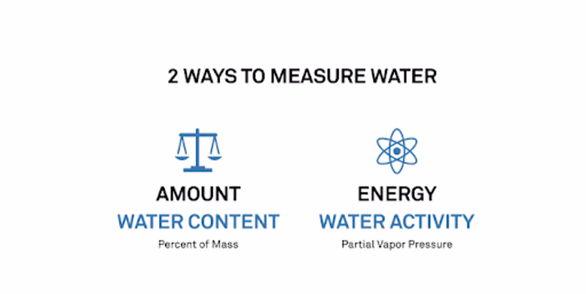 For some of the people we speak to, water activity is a new concept, and most people are very familiar with moisture content. I like to separate them and say that there are two water measurements we can make. There's one where we look at the amount of water, or the moisture content. The other is to look at the energy of the water – what is the water able to do? We measure those in completely different ways.